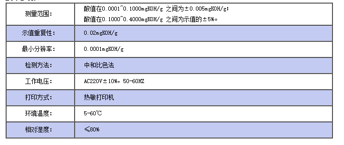 0.00010.100mgKOH/g之间为±0.0005mgKOH/g;酸值在0.1000.40